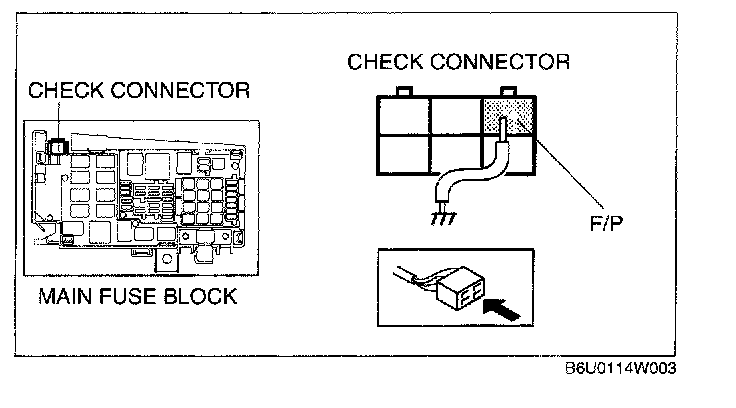 1. Short the check connector terminal F/P to body GND using a jumper wire.