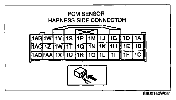 - VTC shutter valve switch terminal C (harness-side) and PCM terminal 1 N (harness-side)