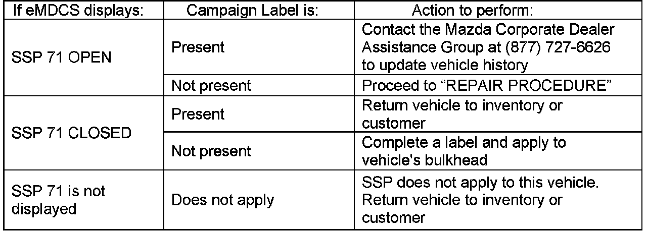 2. Perform a Warranty Vehicle Inquiry using your eMDCS System and inspect vehicle for an Authorized Modification Label SSP 71 attached to the vehicle's bulkhead.