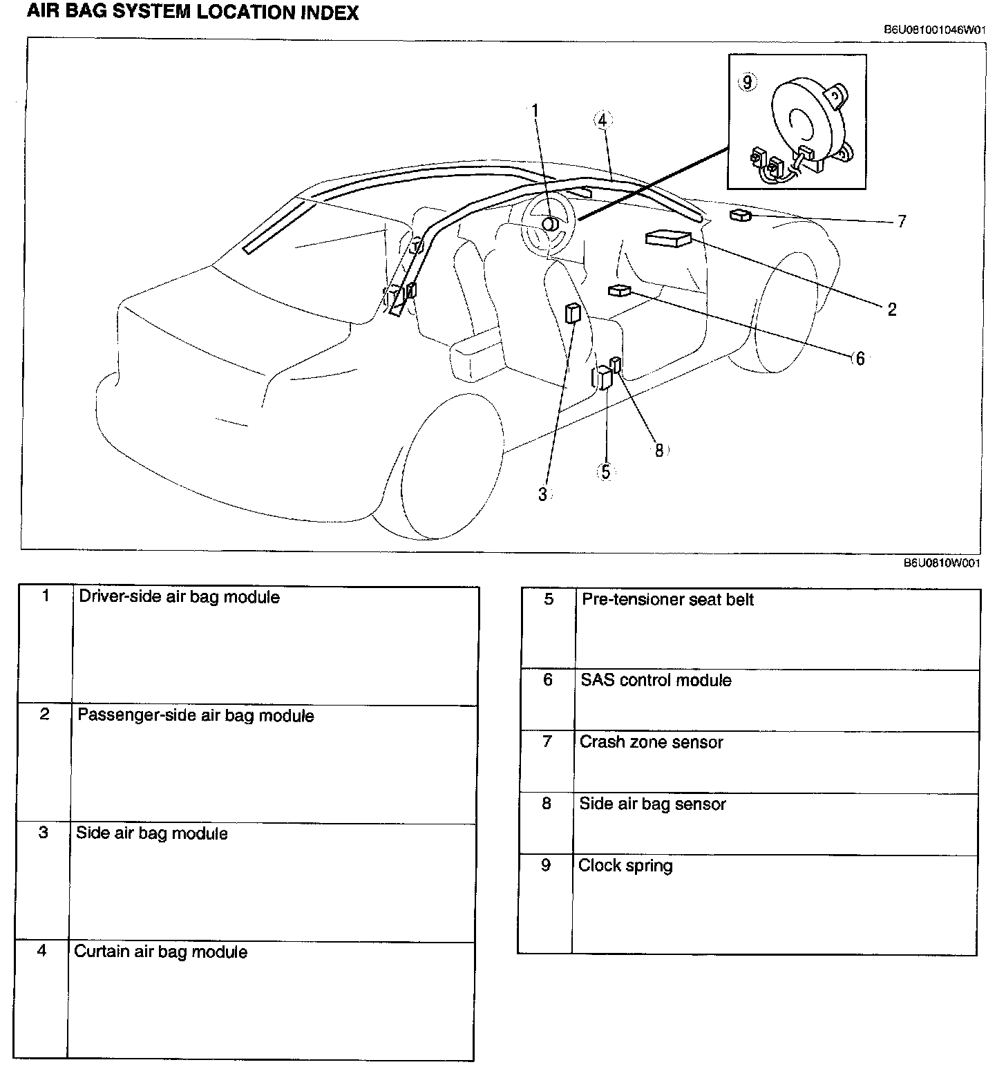 Air Bag System Location Index: