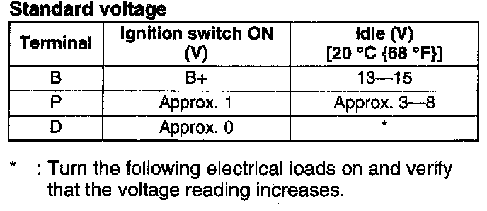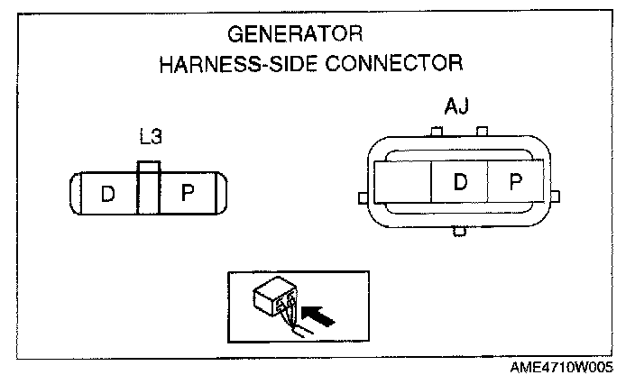 - If not as specified, inspect generator warning light, wiring harnesses between the battery and the generator warning light.