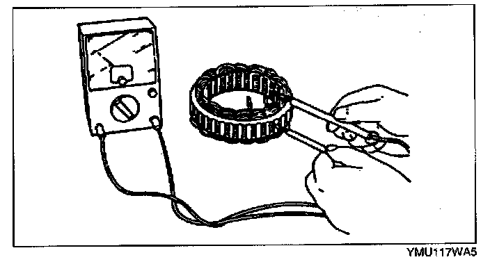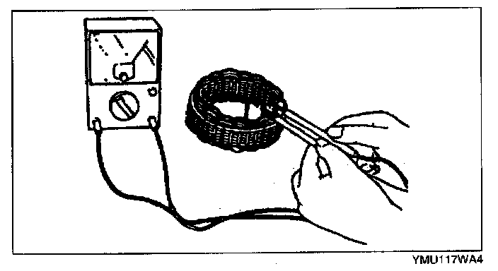 1. Inspect for continuity between the stator coil leads using an ohmmeter.