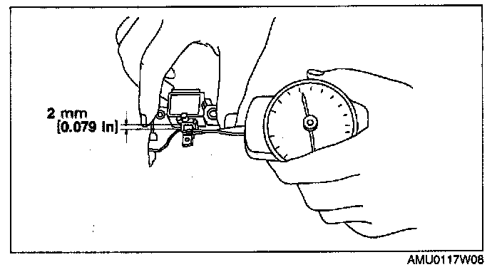2. Read the spring pressure gauge at the brush tip projection of 2 mm {0.079 in}.