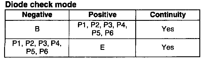 2. Inspect for continuity of the diodes using an digital circuit tester.