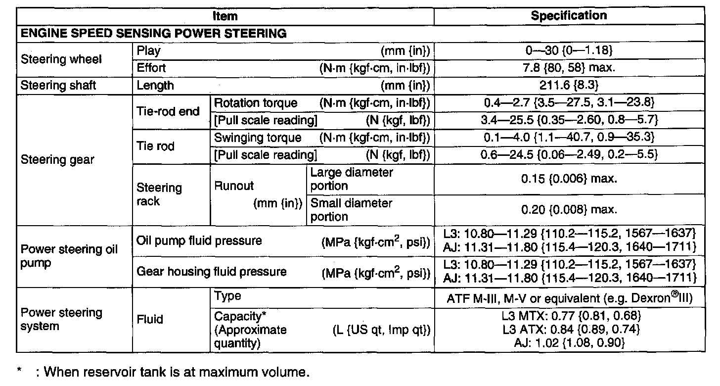 Steering: Specifications
