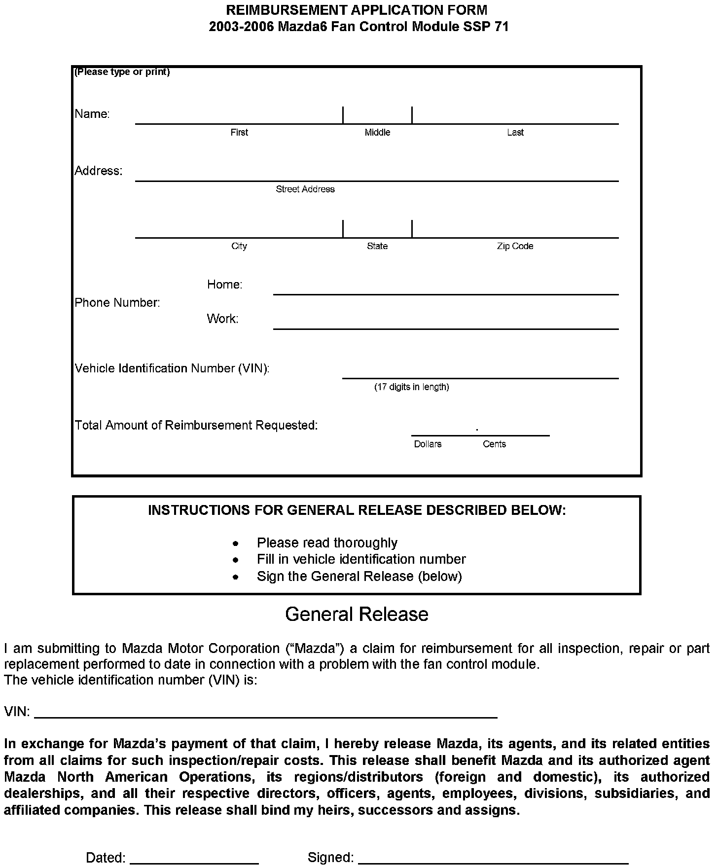 Reimbursement Application Form