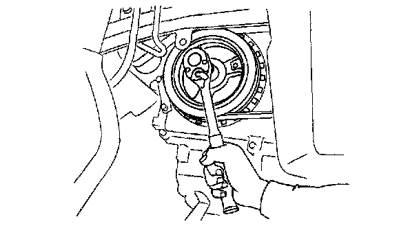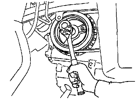 1. Hold the crankshaft pulley to prevent the drive plate from rotating.