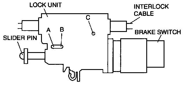 ^ Applying a load to the interlock cable while pressing the lock piece in can affect the lock unit operation.