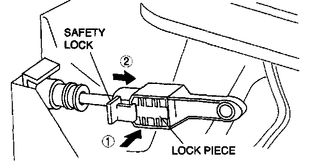 5. Lock the lock piece of the selector cable (selector lever side) in the order shown in the figure.