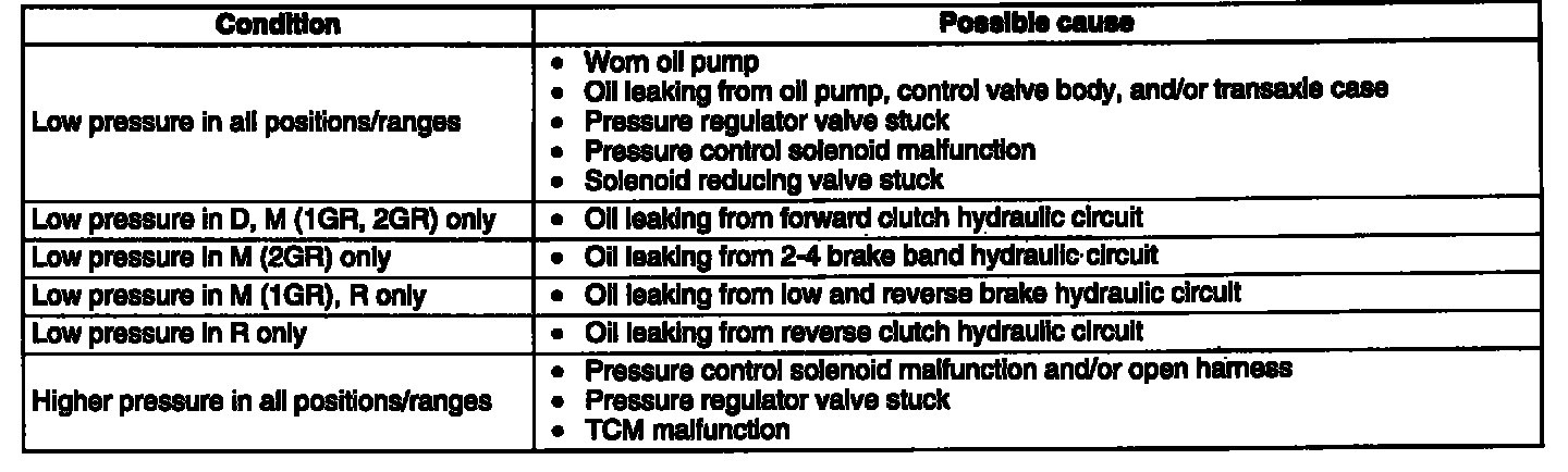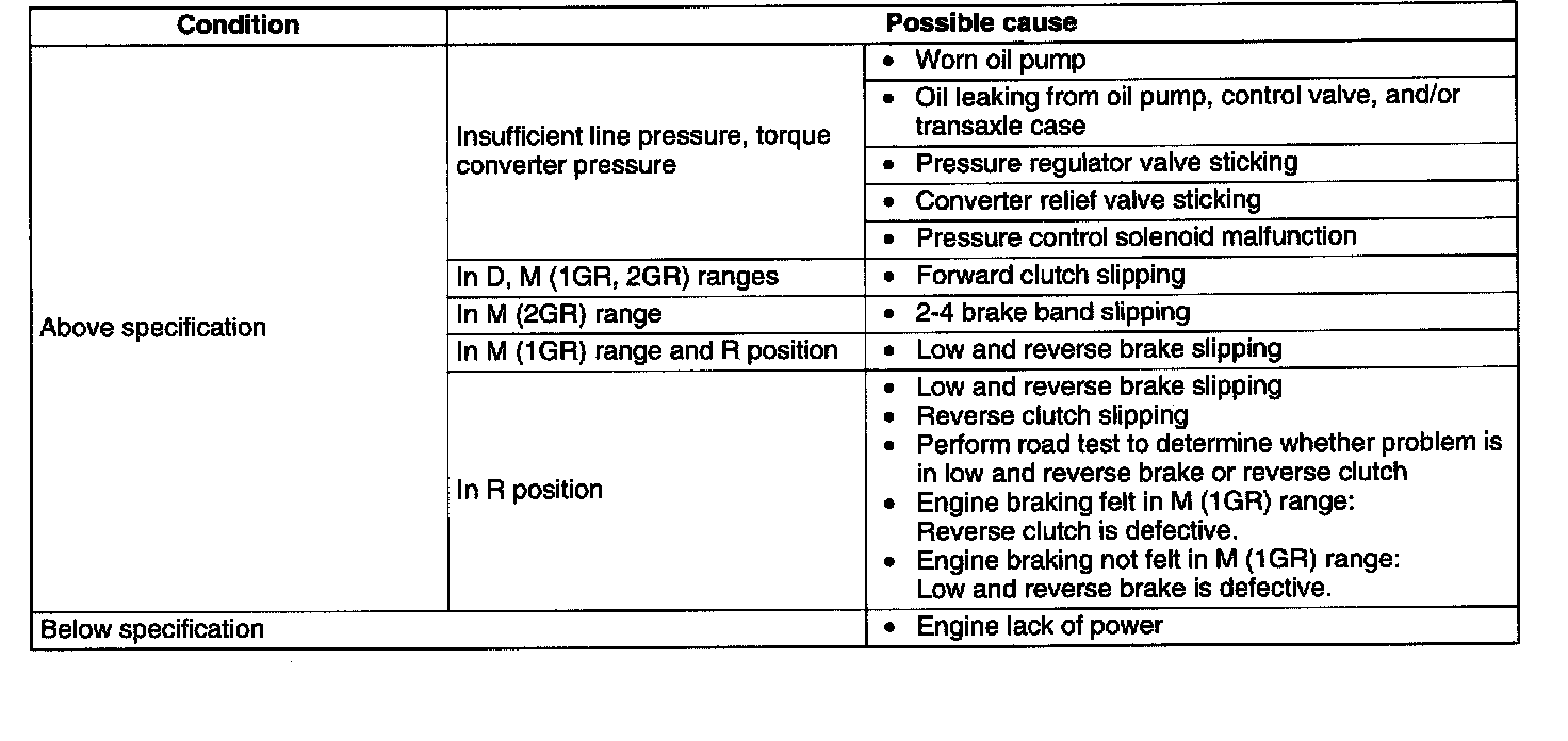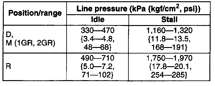 3. Start the engine and shift the selector lever to D range and read the line pressure at idle.
