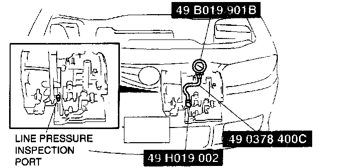 2. Connect the SSTs (49 0378 400C, 49 B019 901 B and 49 H019 002) to the line pressure inspection port.