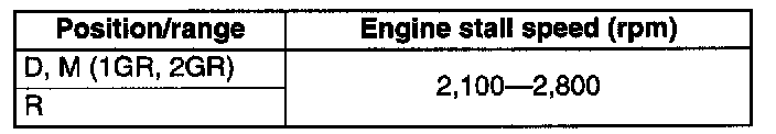 6. Perform stall tests of D, M (1GR, 2GR) ranges in the same manner.