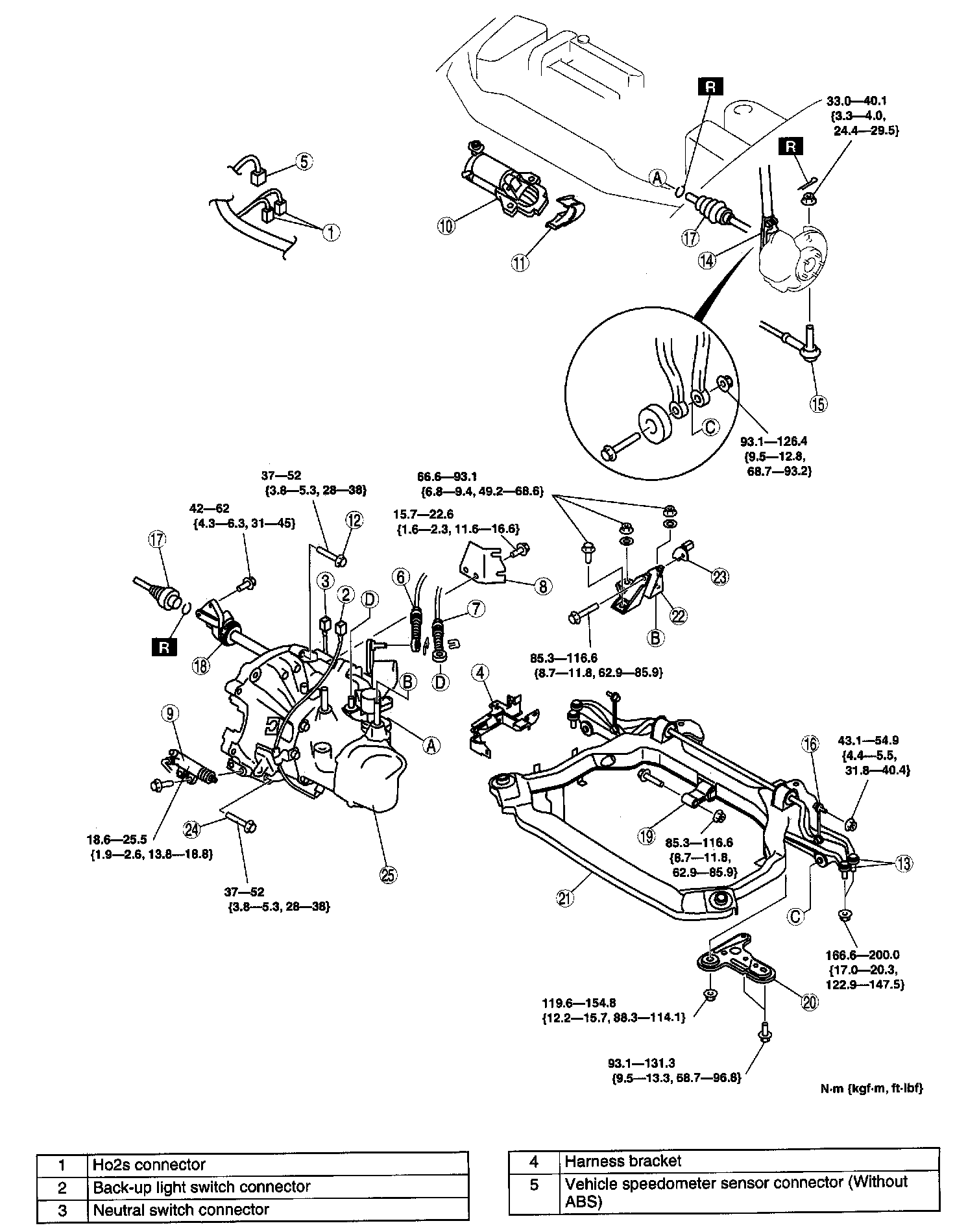 A, B, C: 66.6 - 93.1 Nm (6.8 - 9.4 kgf-cm, 49.2 - 68.6 ft. lbs.)