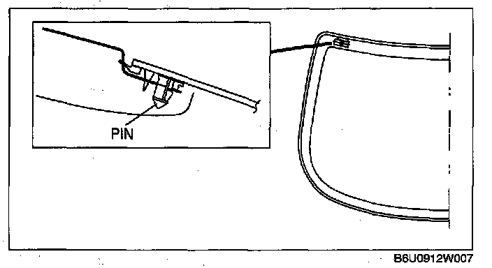 7. Set the position of the front windshield glass and insert a pin into the body. Install the glass.