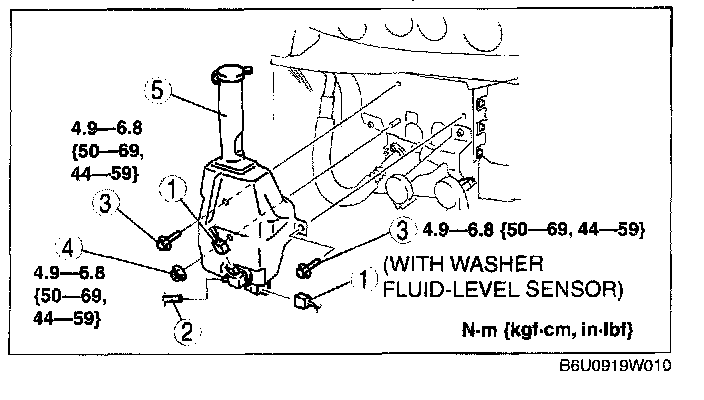 WASHER TANK REMOVAL/INSTALLATION1. Disconnect the negative battery cable.