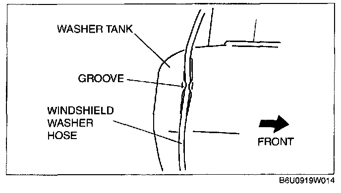 1. Install the windshield washer hose by inserting it in the washer tank groove.