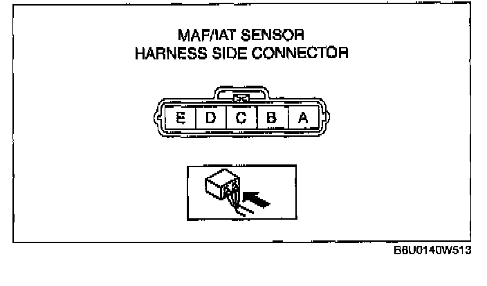 - MAF/IAT sensor terminal E (harness-side) and power supply