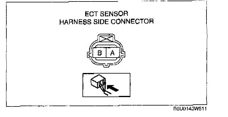 3. Measure the resistance between the ECT sensor terminals A and B using an ohmmeter.