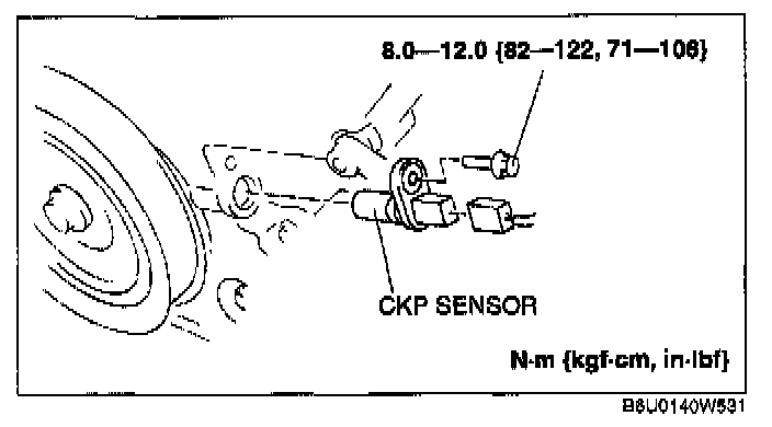 CAUTION: When foreign material such as an iron chip is on the CKP sensor, it can cause abnormal output from the sensor because of flux turbulence and adversely affect the engine control. Be sure there is no foreign material on the CKP sensor when replacing.