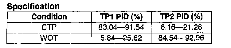 6. Verify that the TP1 or TP2 PID (percentage) is as indicated in the table given according to the condition of the throttle valve.