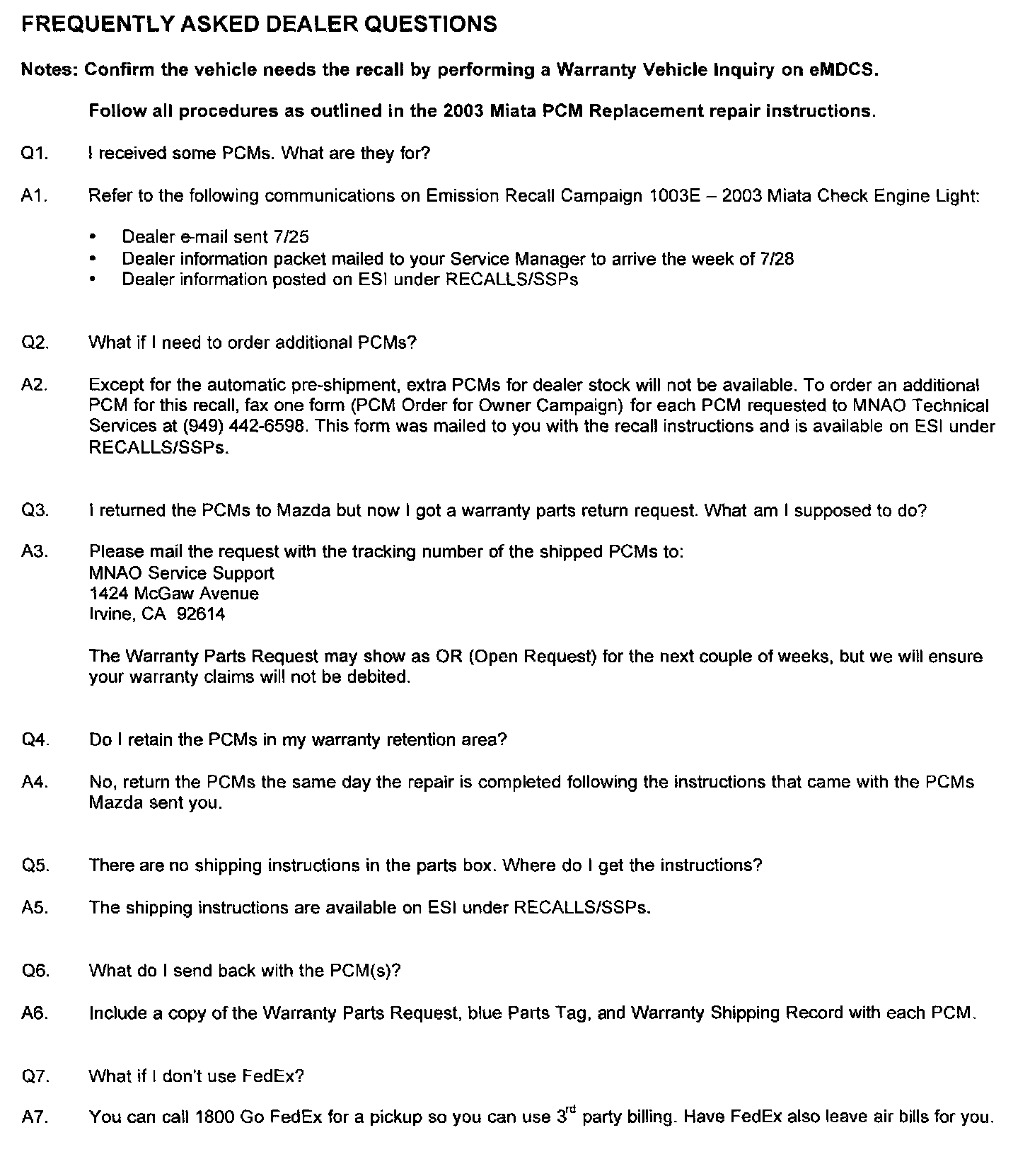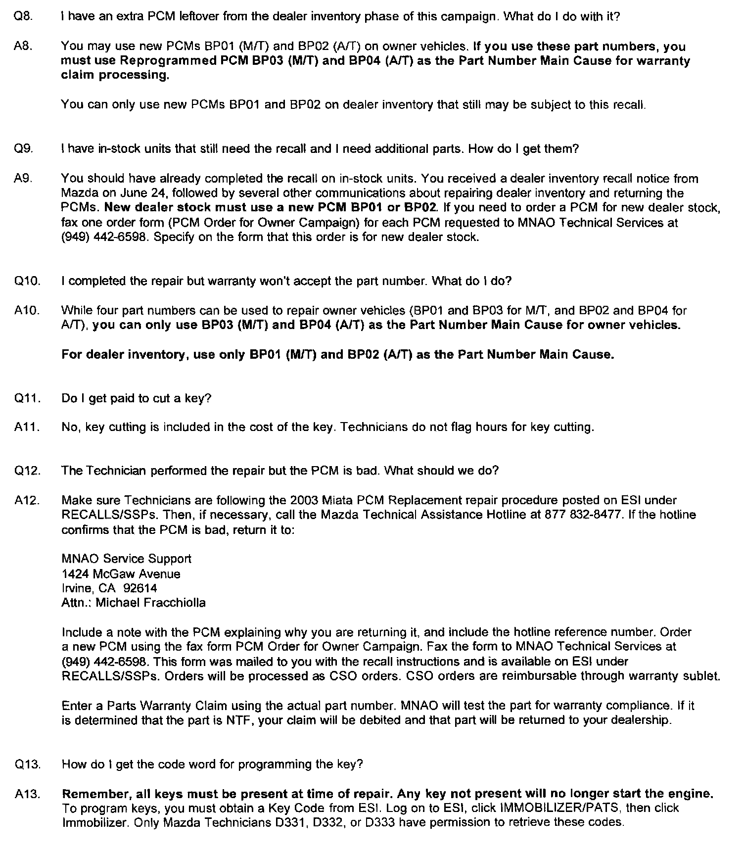 Technical Service Bulletins