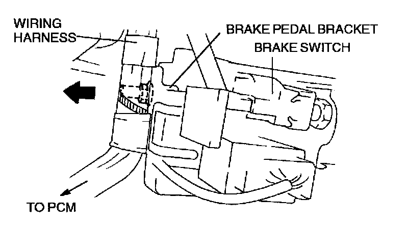 c. Push the harness (PCM harness) installed to the brake pedal bracket in the opposite direction of the brake pedal bracket.