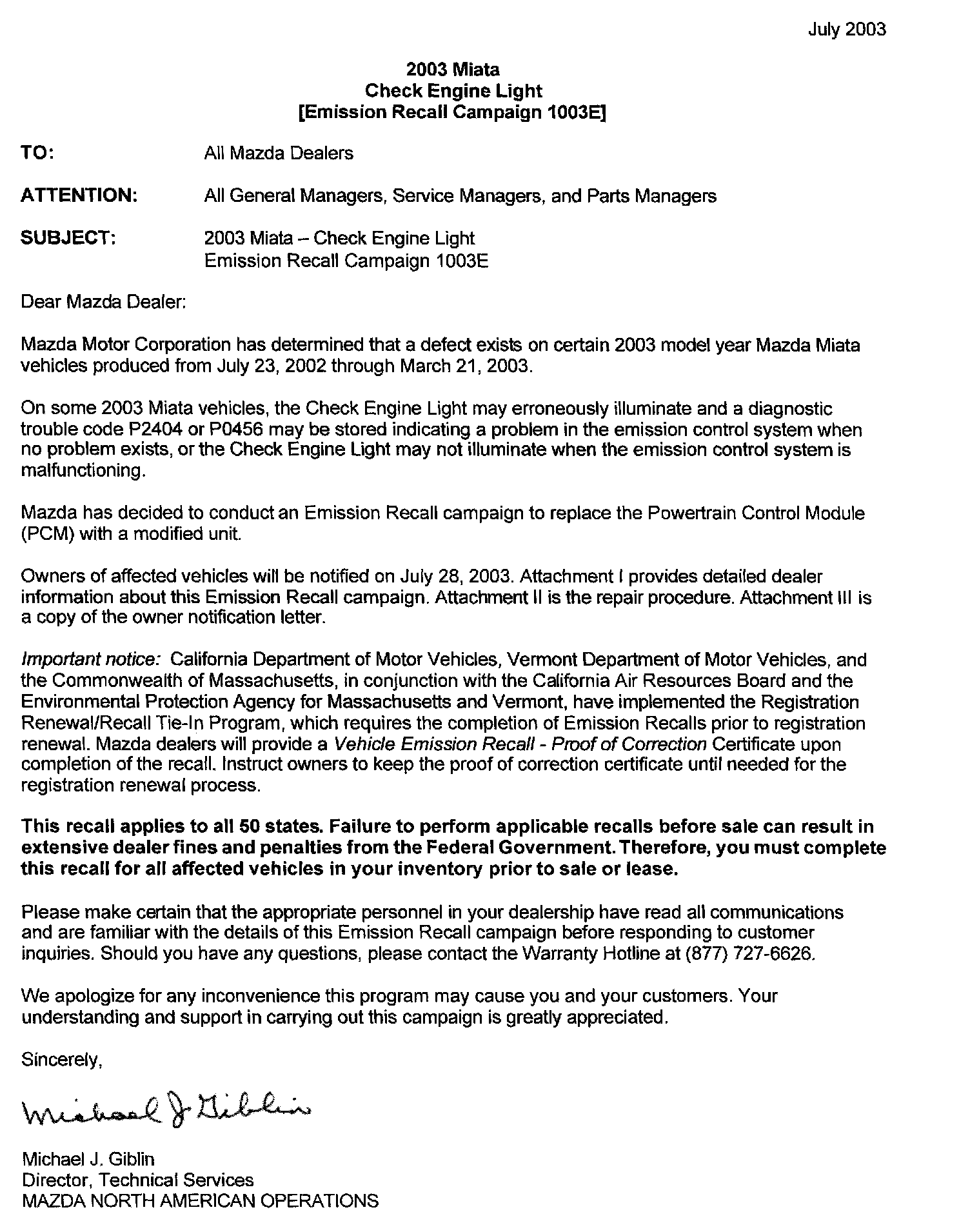 Dealer Letter