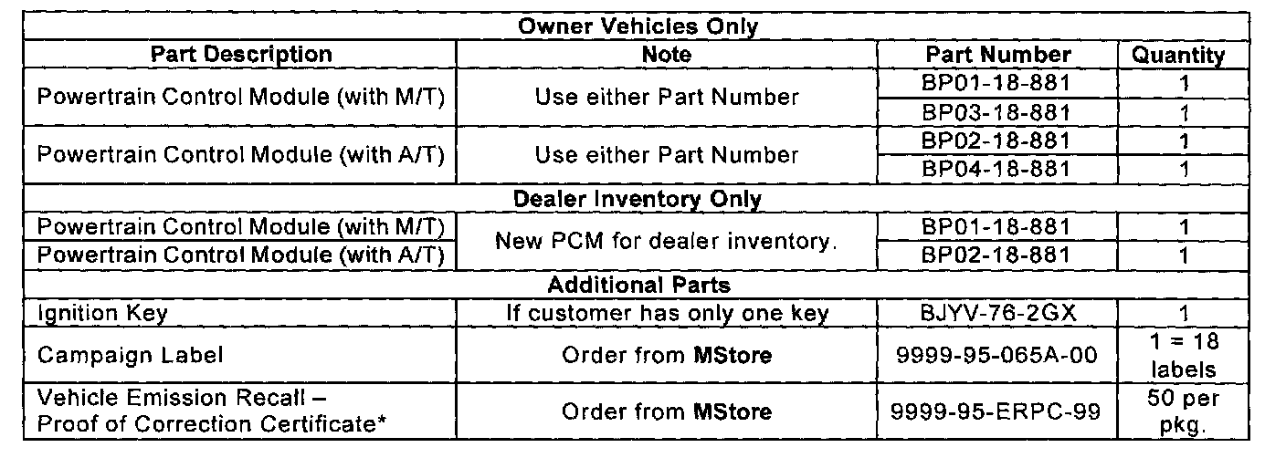 ^ Include a copy of the Warranty Parts Request, blue Parts Tag, and Warranty Shipping Record with each PCM.