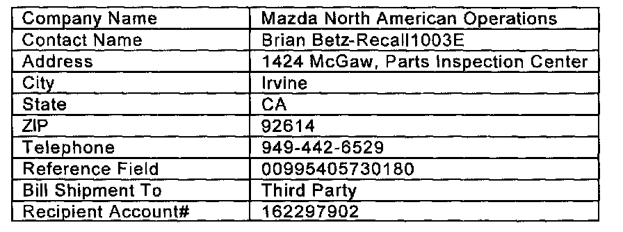 ^ Ship the parts using FedEx Priority Overnight Service with 3rd party billing.