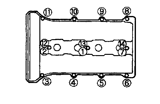 Tighten the valve cover bolts in two or three step in the order shown.