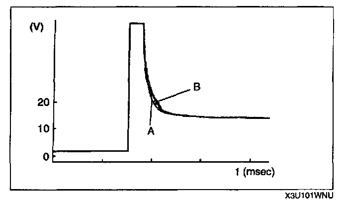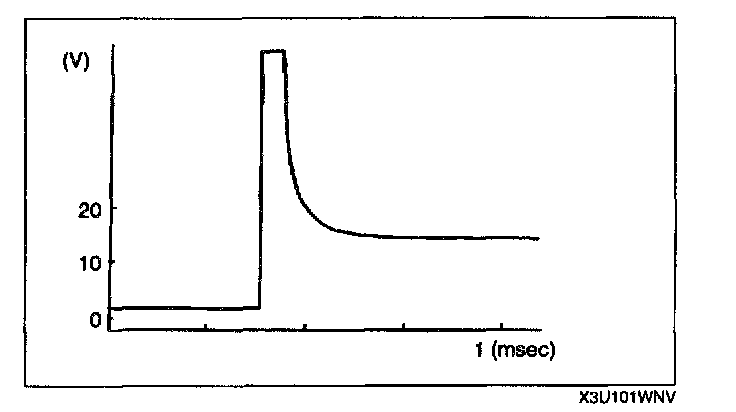 Counter electromotive voltage A, generated when the three-way solenoid valve or the fuel injector is turned off from on, shows irregular convergence because induced electromotive voltage B, generated by the plunger return operation, is added to it.