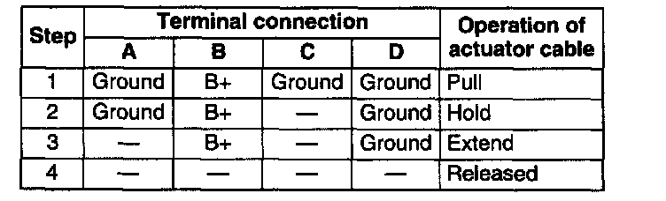 6. Connect B+ and a ground to the terminals as shown and confirm the operation of the actuator cable.