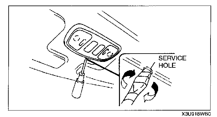 1. Insert a tape-wrapped, flathead screwdriver into the service hole.