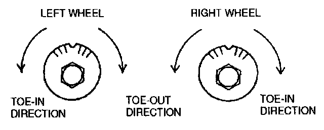 Note: Turning the adjusting cam bolt one complete turn changes the toe-in about 3.0 mm (0.12 inch) (0°18').