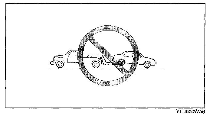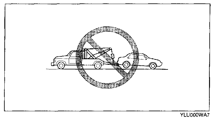 CAUTION: Do not tow the vehicle backward with driving wheels on the ground. This may cause internal damage to the transaxle.
