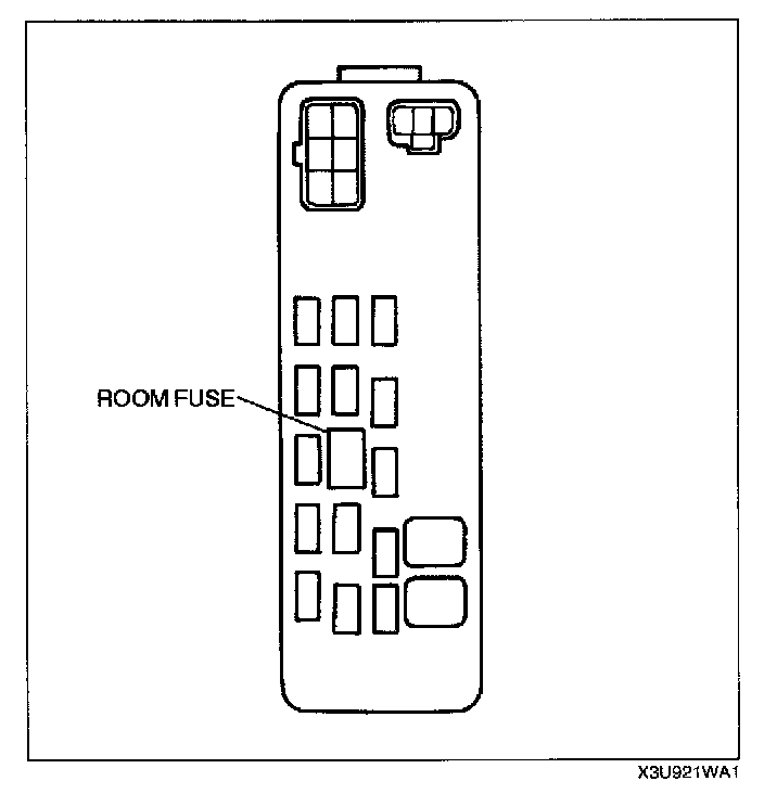 ROOM FUSE INSTALLATIONNOTE: When the ROOM fuse is burnt or removed, the malfunction indicator lamp illuminates. If the ROOM fuse is replaced or installed with the ignition switch at ON position, the malfunction indicator lamp will continue to illuminate.