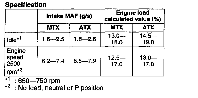 NOTE: The scan tool shows the MAF rate and load value.