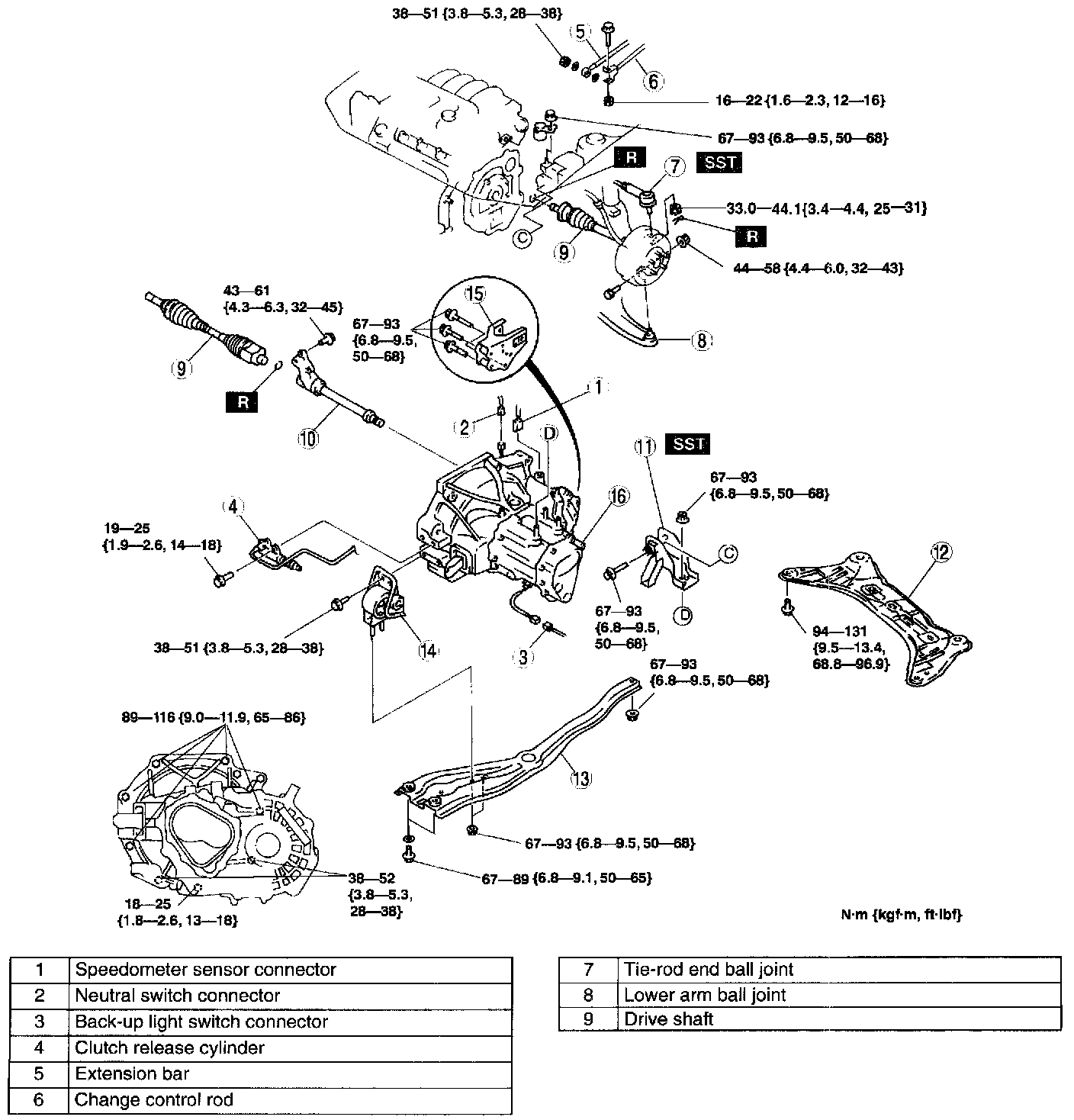 Nut C: 67 - 93 Nm (6.8 - 9.5 kgf.m, 50 - 68 ft. lbs.)