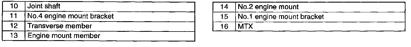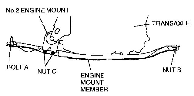 2. Put the No. 2 engine mount stud bolts in the installation holes when installing the engine mount member.