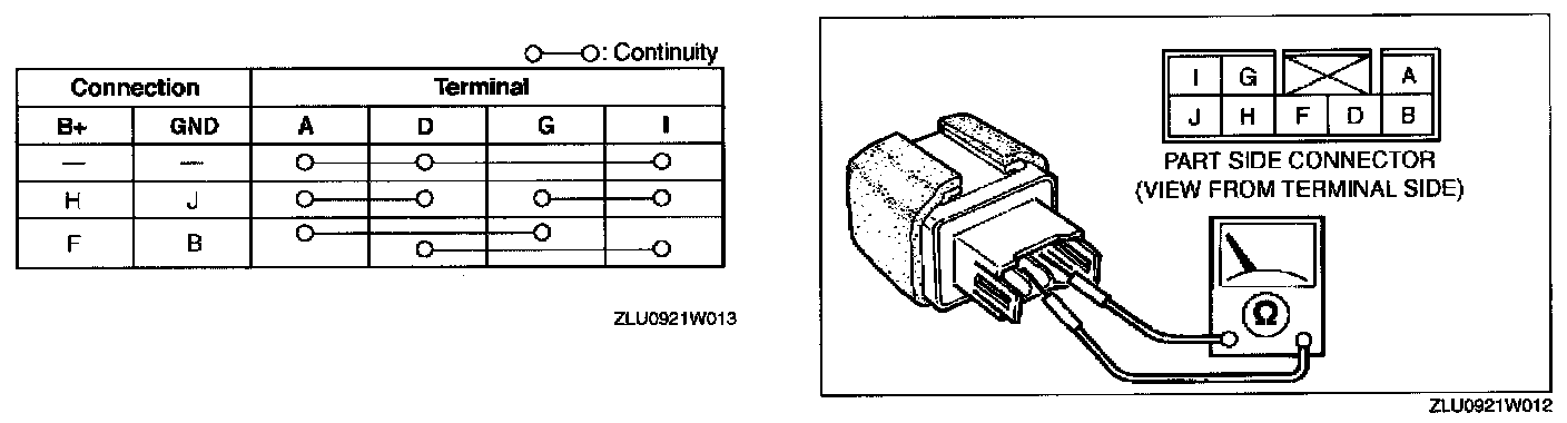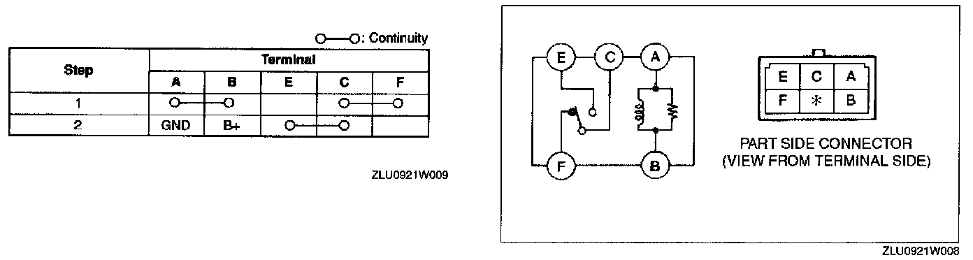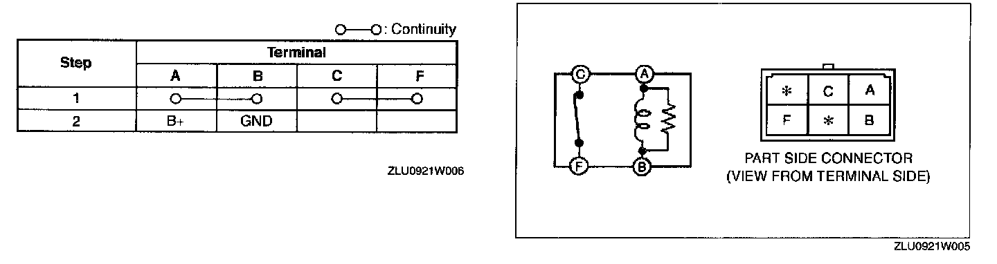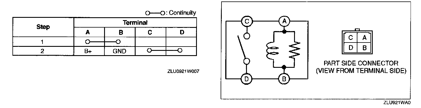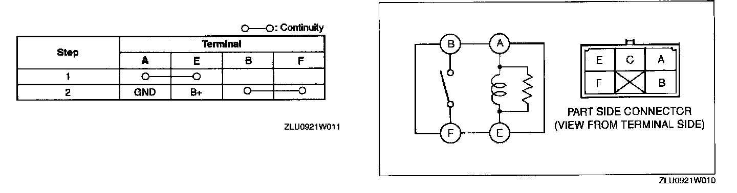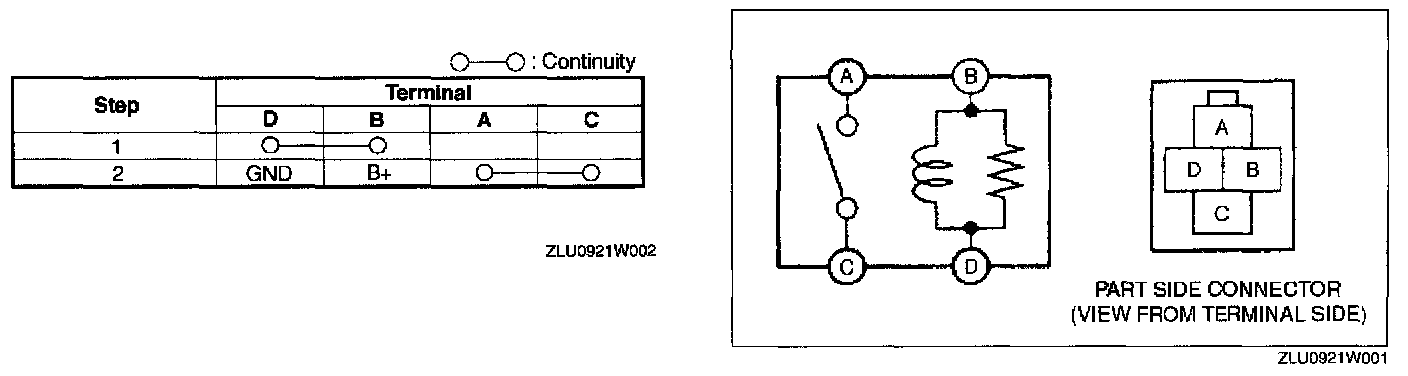 2. Inspect for continuity between the relay terminals using an ohmmeter.