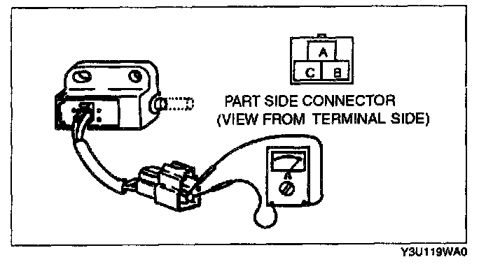 2. Inspect for continuity between terminals of the starter interlock switch using an ohmmeter.