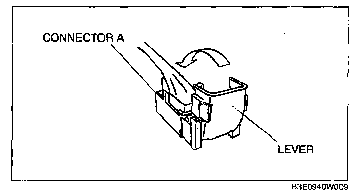 1. Rotate the lever in the direction of the arrow and remove connector B.
