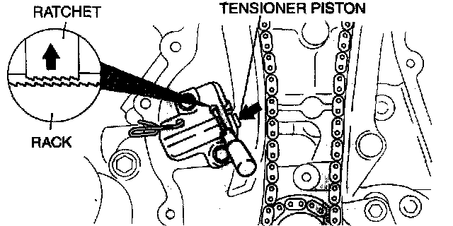 1. Unlock the chain tensioner ratchet using a suitable screw driver or equivalent tool.