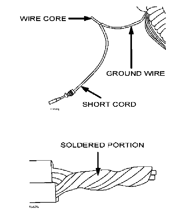13. Bend soldered ground wire approximately 1-1/2" (40mm) from soldered end. Place heat shrink tubing over soldered end.