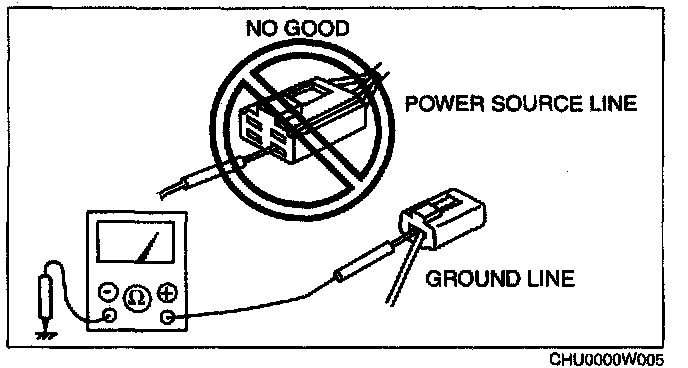 CAUTION: Do not connect a Jumper wire from the power source line to a body ground. This may cause burning or other damage to wiring harnesses or electronic components.