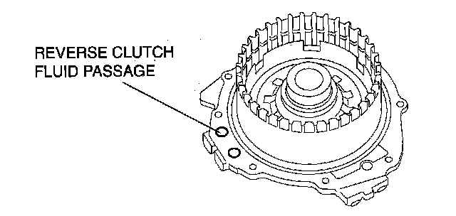 2. Remove the reverse piston from the 2-4 brake drum by applying compressed air through the fluid passage.