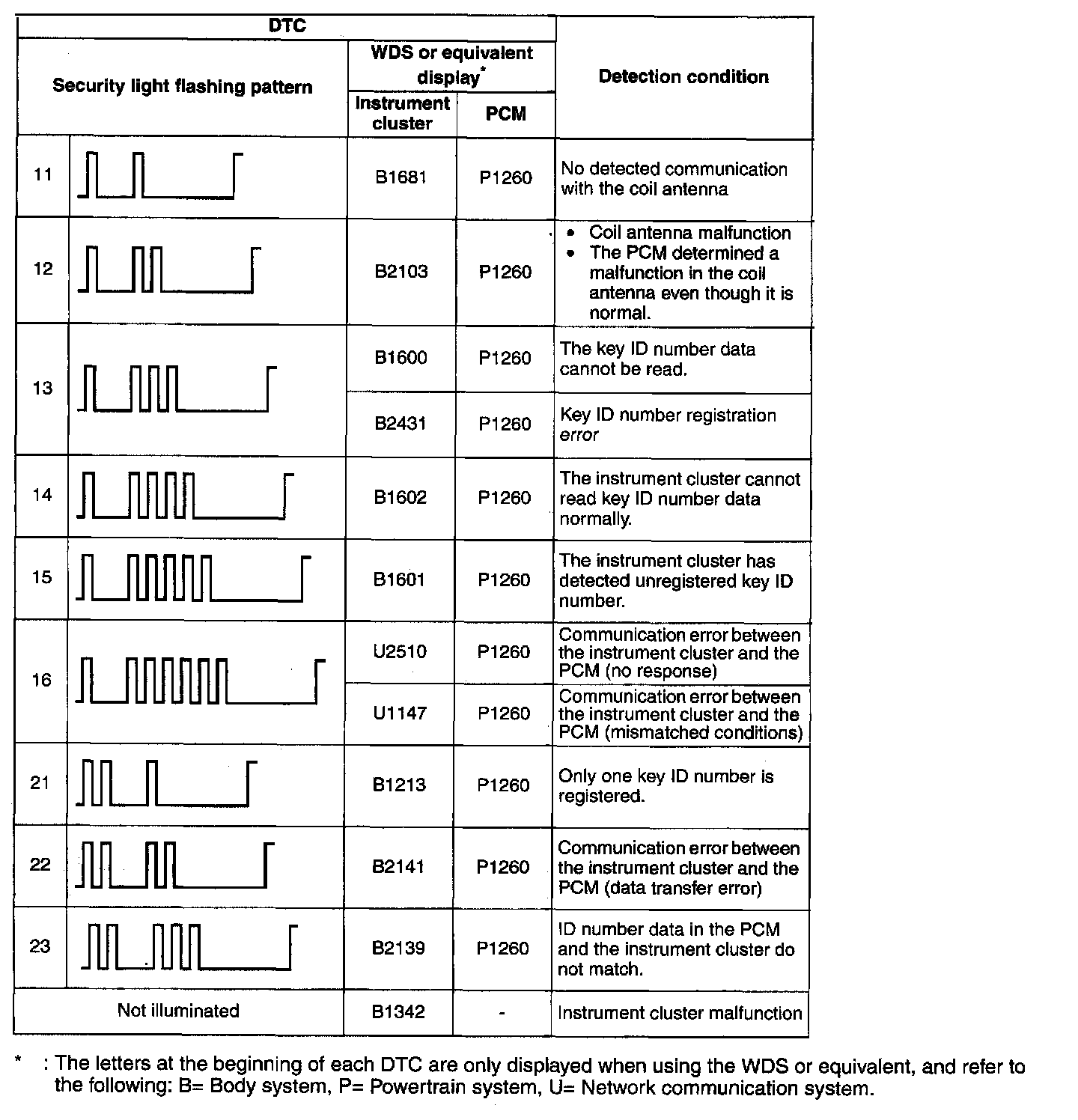 DTC Table [Immobilizer System]:
