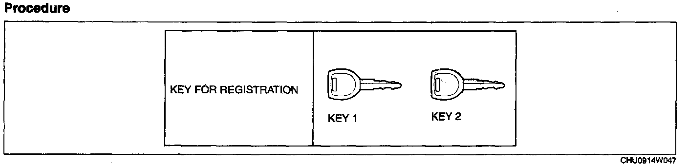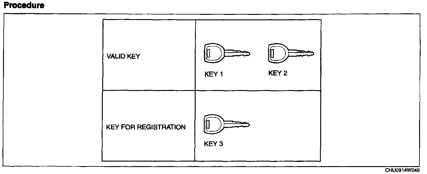 1. Using any key, turn the ignition switch to the ON position. (Either a valid or an unregistered key can be used.)