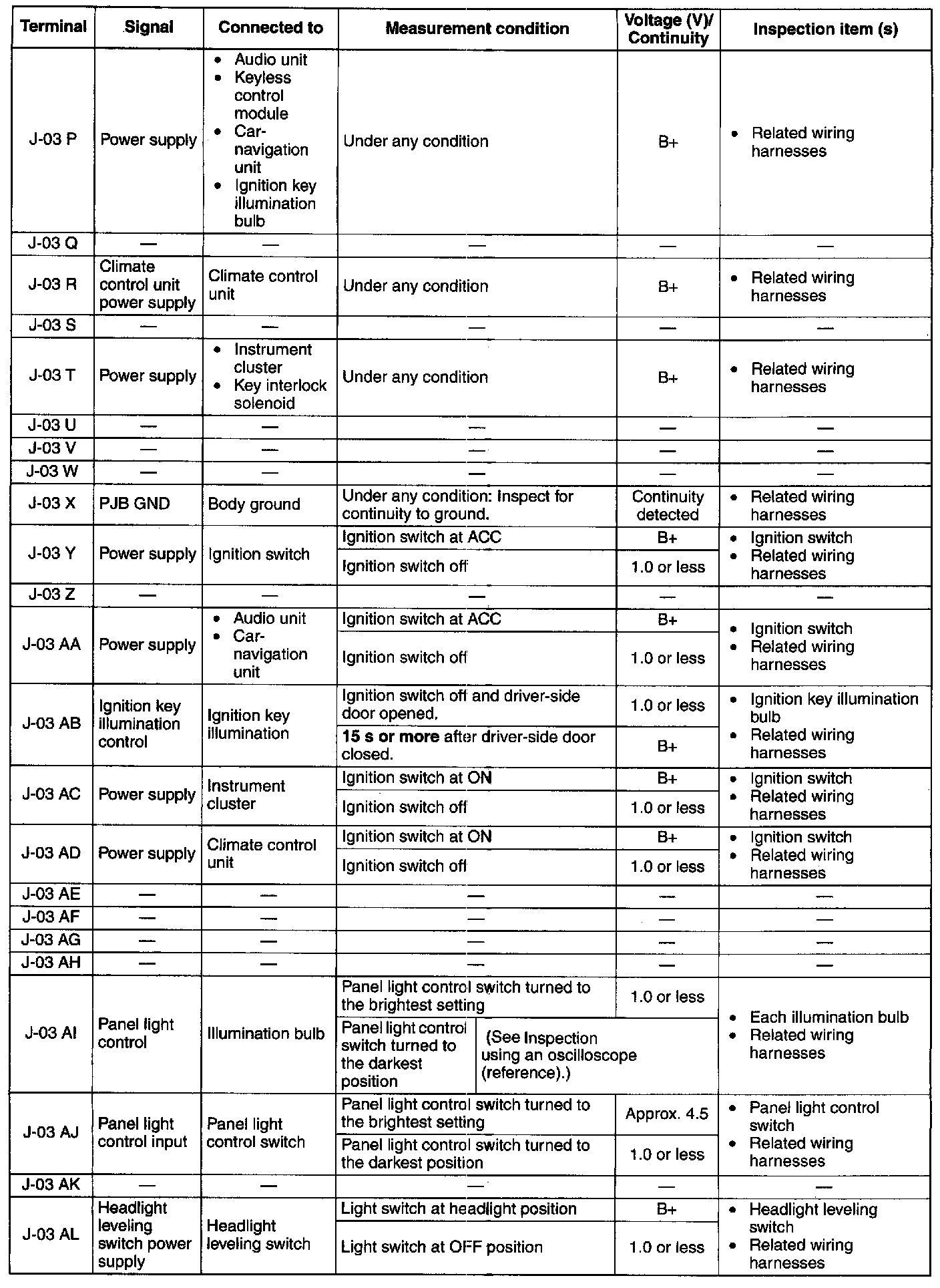 - Terminal connected: J-03 AL (+) - Negative battery terminal