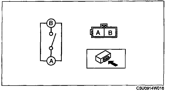 Inspect for continuity between the trunk lid key cylinder push switch terminals.